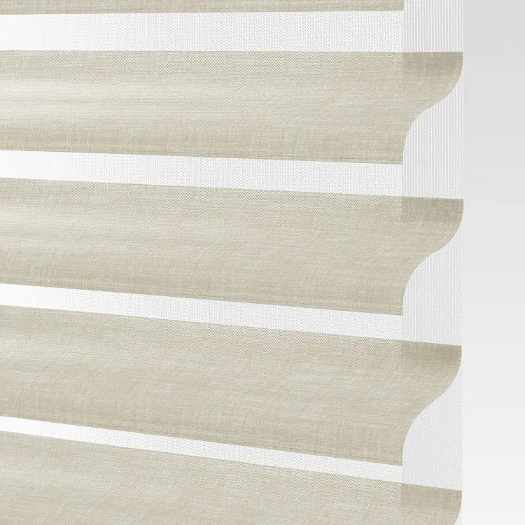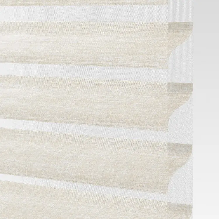 Our sheer shading system blends the soft beauty of light-filtering fabric with the functionality of a blind, giving you complete control over the ambiance of your space. Fabric vanes are suspended between two sheer layers to create subtle, adjustable brightness. During the day, tilt the vanes open to enjoy your view while maintaining privacy. At night, simply close the vanes for full privacy and comfort.